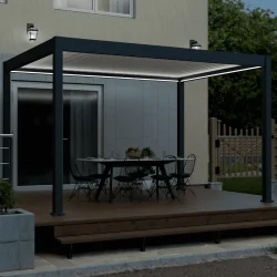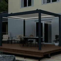 Transform your outdoor space with warm, adjustable lighting. Enjoy inviting evenings under your pergola with illumination designed to extend your comfort well after sunset.